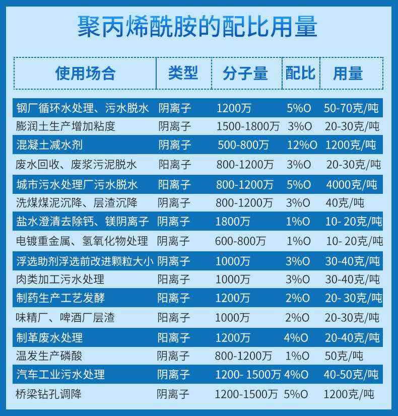 应用领域广泛 (附聚合氯化铝PAC和聚丙烯酰胺PAM常用行业用量表)
